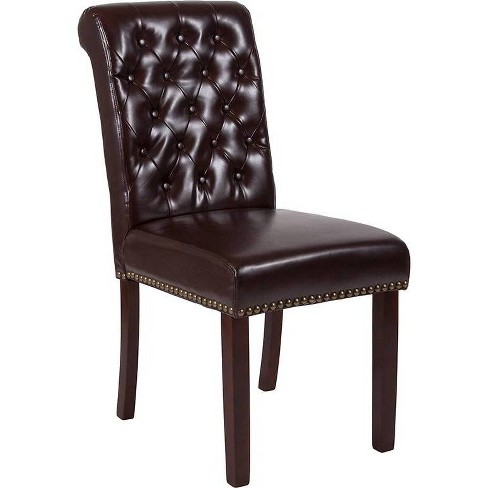 Parsons Chair With Rolled Back Leather Brown Riverstone Furniture Target